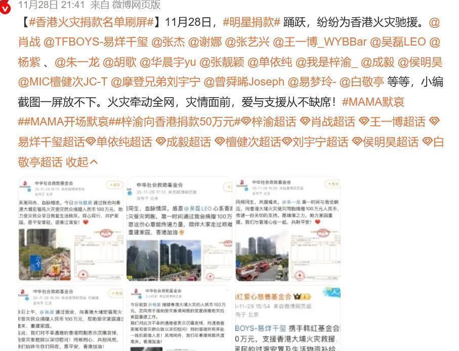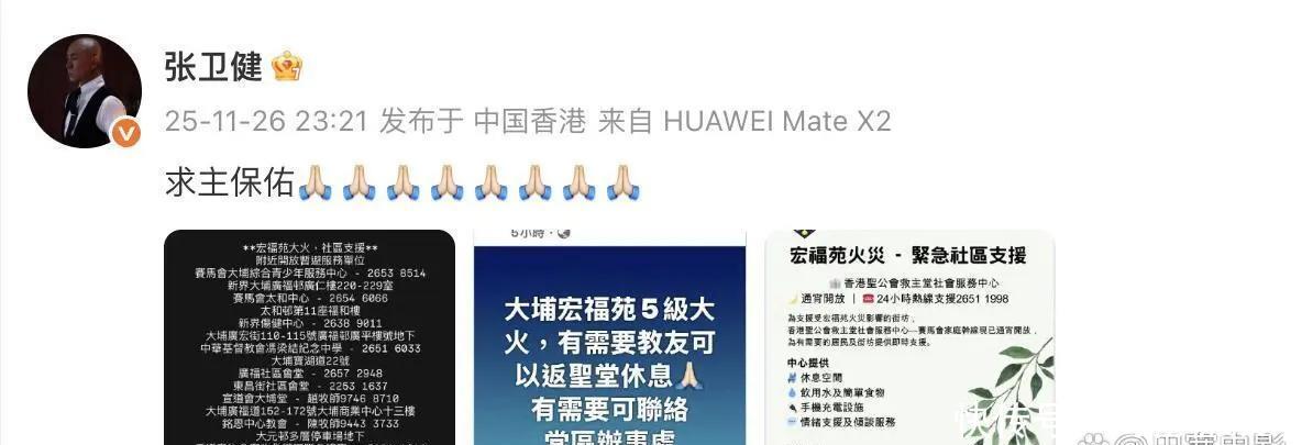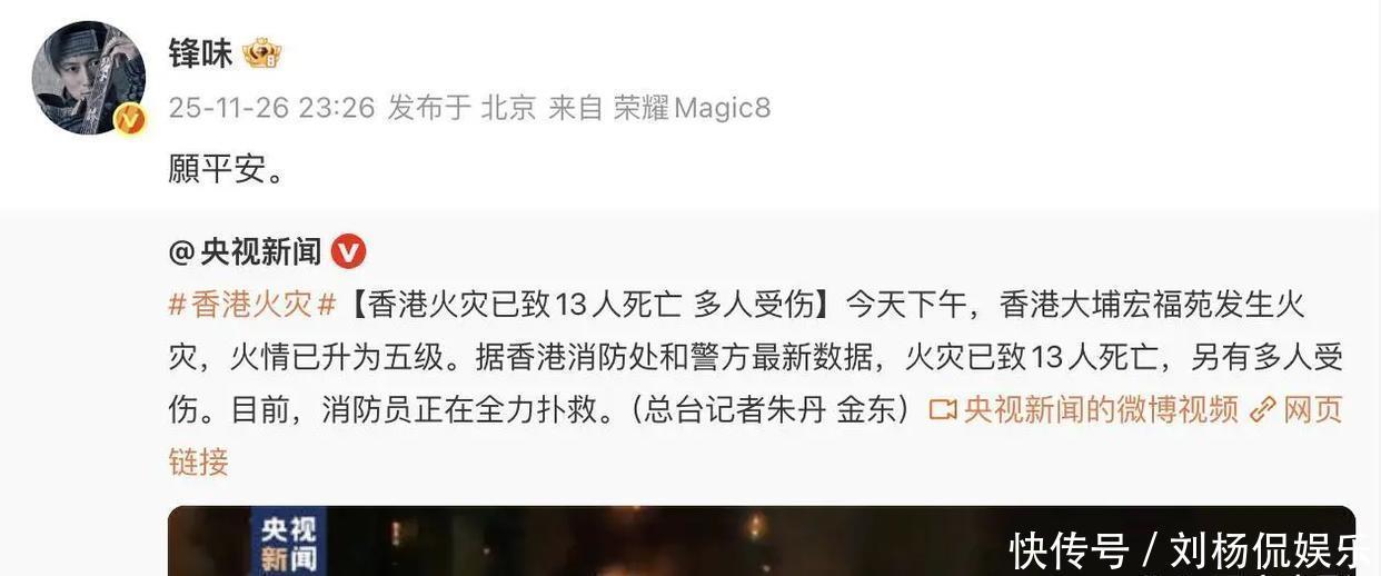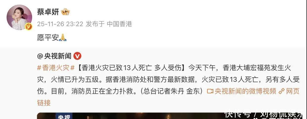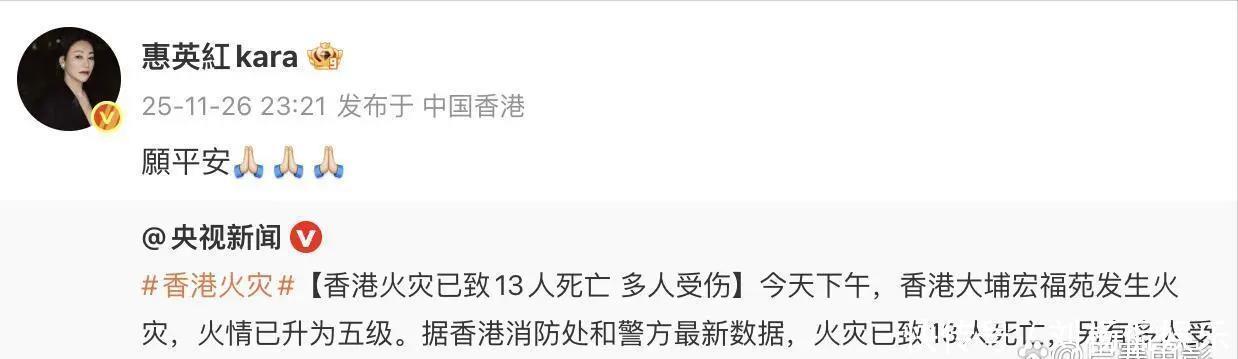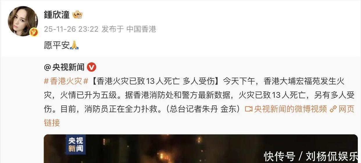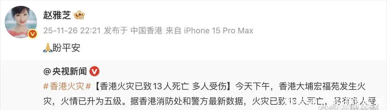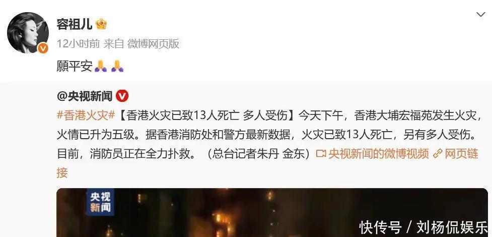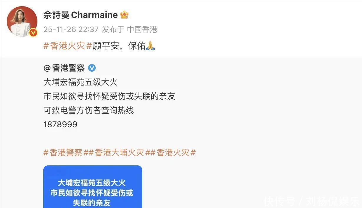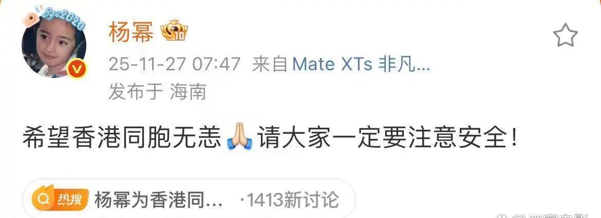有家人在香港的杨幂同样心系火灾,27日一大早发文“希望香港同胞无恙,请大家一定要注意安全!”