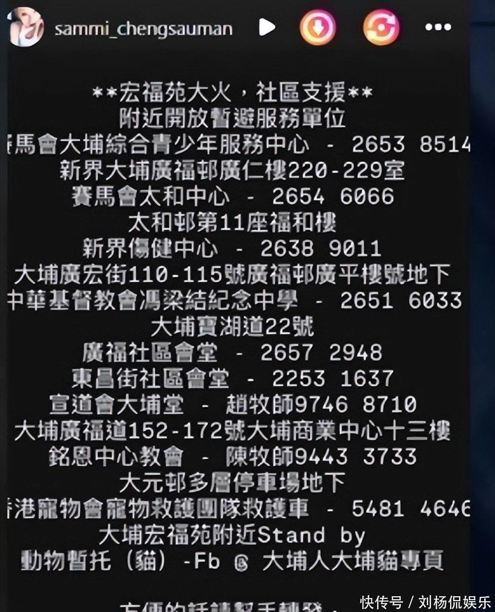 郑秀文在社交账号发布社区支援资讯,并鼓励大家进行转发,让有需要的人和动物们都能获得救援。