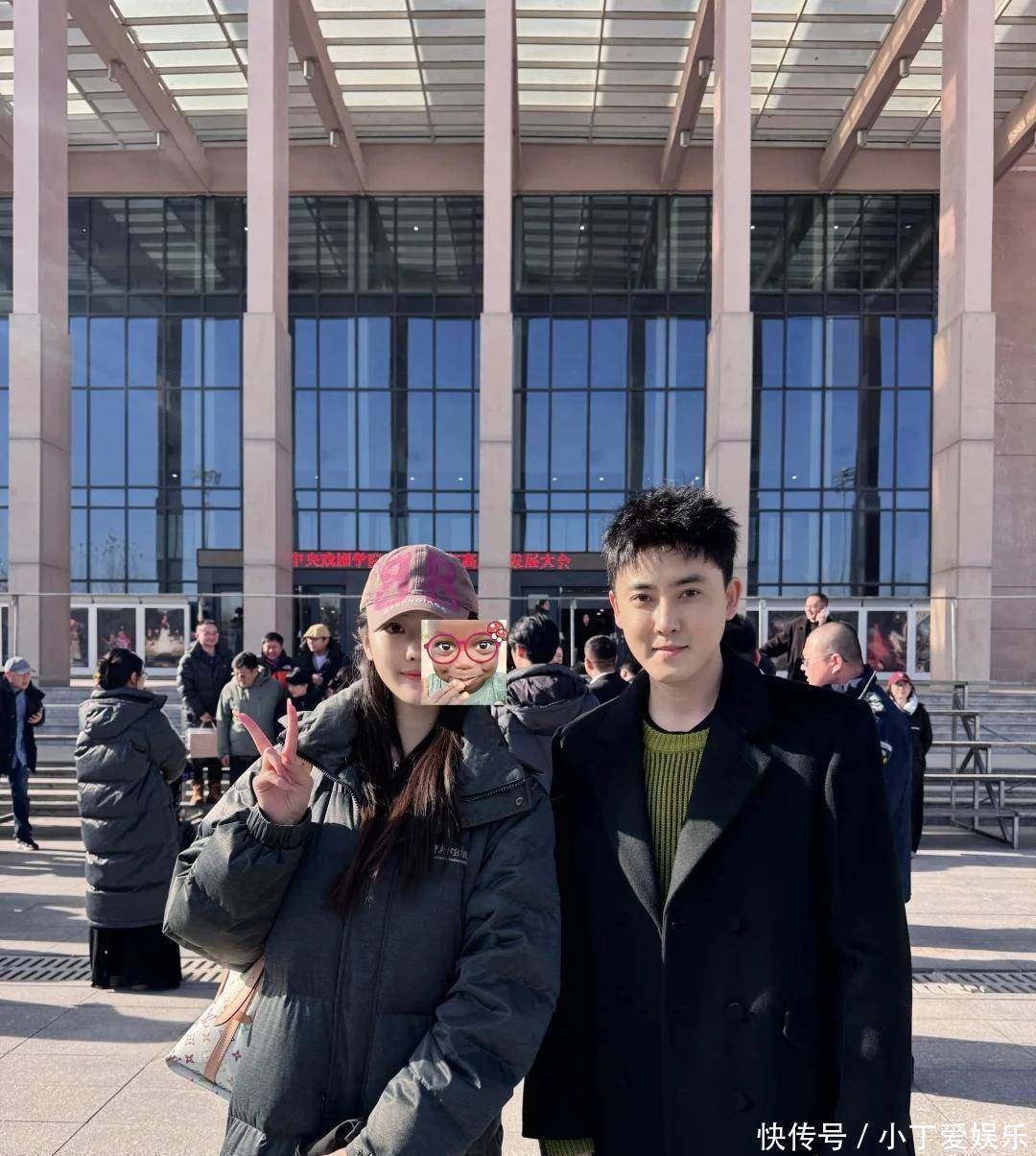 佟丽娅那 simple 的穿着,再加上靳东的沉稳低调,都体现出了中戏学子“戏比天大”的那份信念。