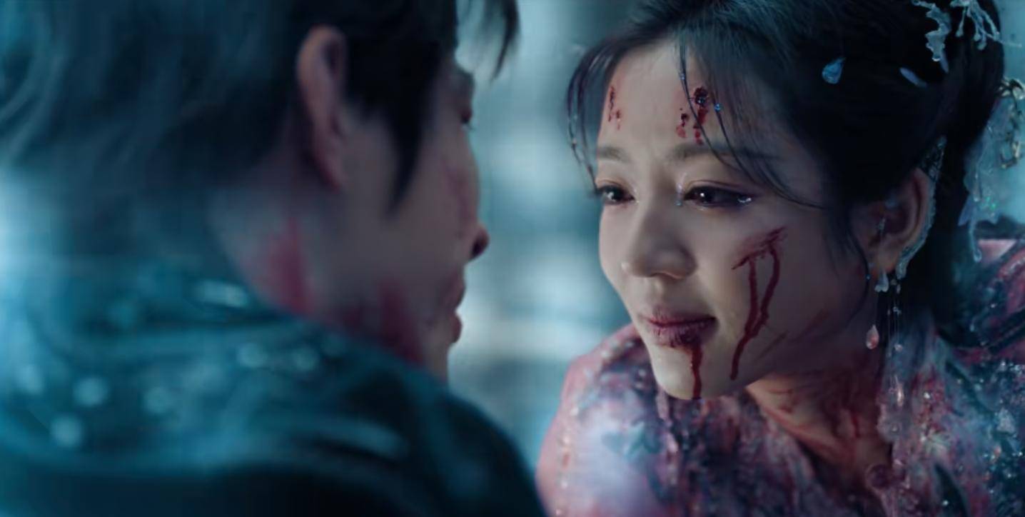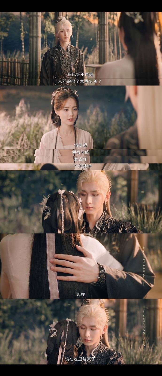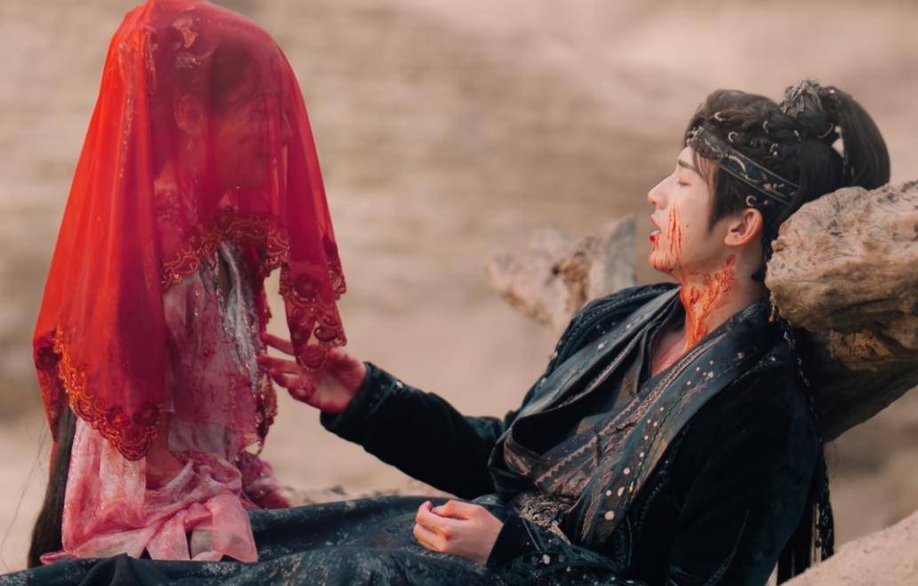 权如沐为救龙微云被父亲杀死,龙微云也殉情,临死前把权如沐带到苦情树下,披着红色婚纱许下来世约定,妖力散尽下了一场雪,两人染血白衣与红盖头成“婚礼即葬礼”的虐心名场面。