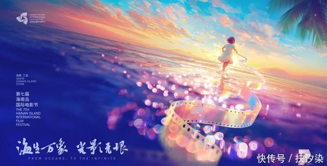 △第七届海南岛国际电影节新闻发布会现场 发布会上公布了本届电影节的主视觉海报,海报中小女孩手持胶片在海面奔跑的奇幻场景,呼应海南自贸港开放包容的海洋特质,象征电影艺术如潮水般浸润生活,激发无限可能的美好愿景。
