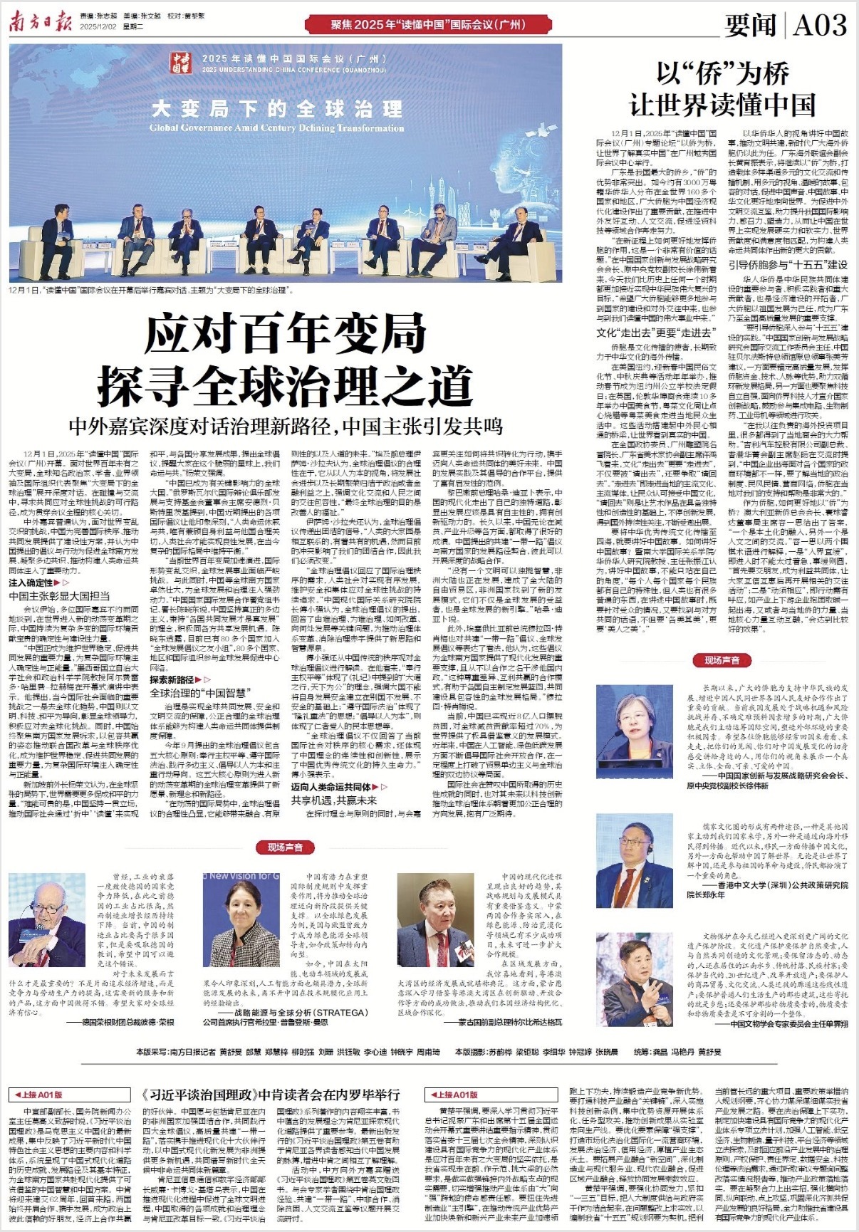 中外嘉宾普遍认为,面对世界变乱交织的挑战,中国为完善国际秩序、推动共同发展提供了建设性方案,并认为中国提出的倡议与行动为促进全球南方发展、凝聚多边共识、推动构建人类命运共同体注入了重要动力。