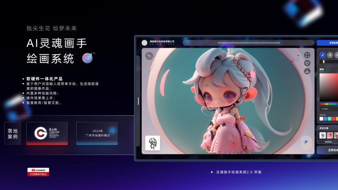 此外,公司还展示了“广州市文化馆·数字文化体验厅”项目,现场设置“AI灵魂画手绘画系统”体验环节,让参会者能够直接感受非遗大模型在文旅场景中的真实落地效果。