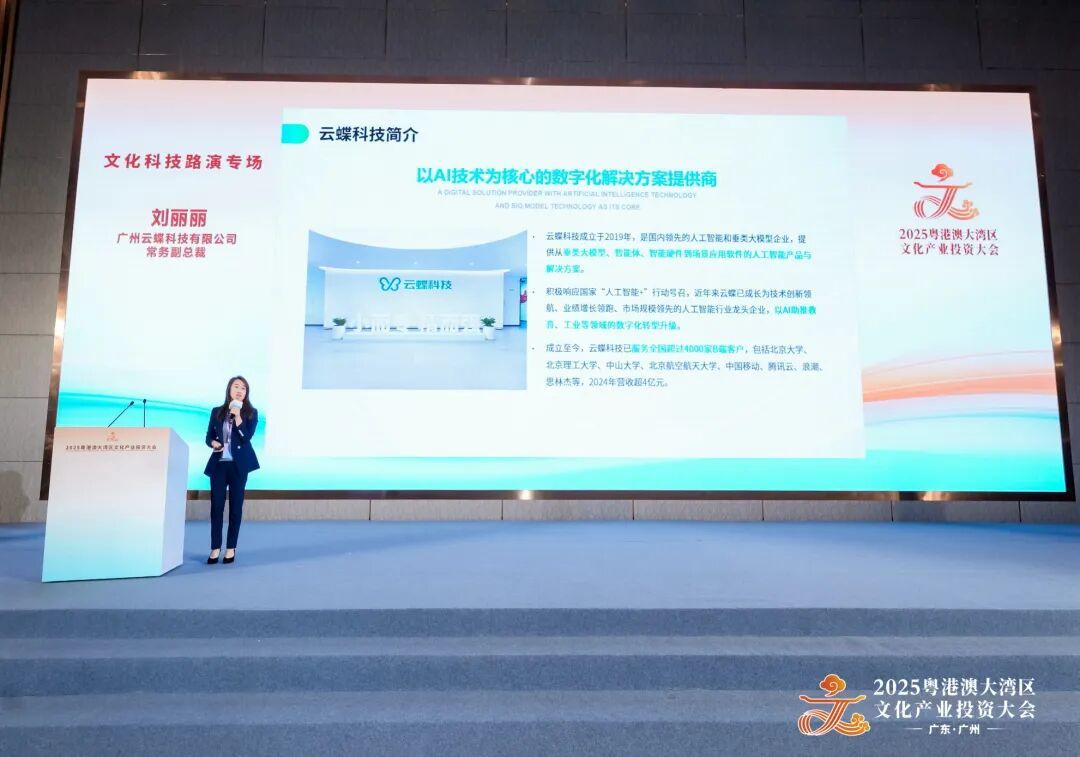 广州云蝶科技有限公司成立于2019年,是国内领先的人工智能企业和垂类大模型企业,提供从AI大模型、核心算法、智能硬件到全场景应用的人工智能技术产品与解决方案,近年来已快速成长为技术创新领航、业绩增长领跑、市场规模领先的人工智能企业。