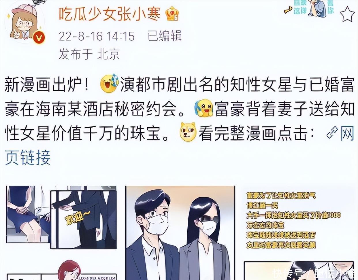 5月份的时候,网上突然流传起一则漫画,里面暗示某女星插足富商家庭,还在海外生了孩子。