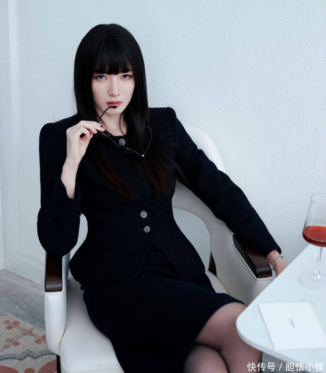 黑色西装搭配包臀裙,踩着一双黑色的小高跟,露出来的腿上,还裹着一层黑丝袜。