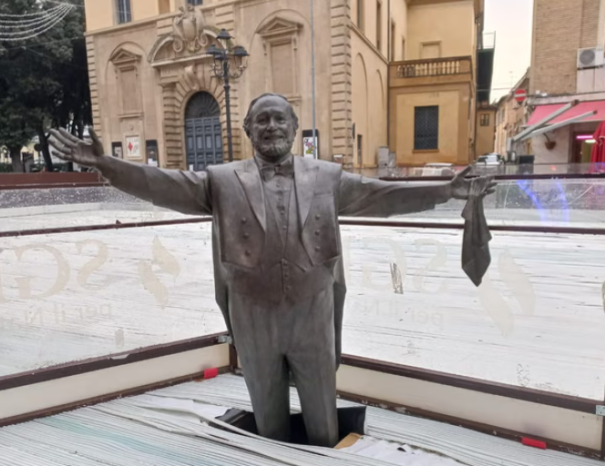 最靠谱股票配资平台 帕瓦罗蒂雕像“被困”溜冰场,意大利一市市长致歉