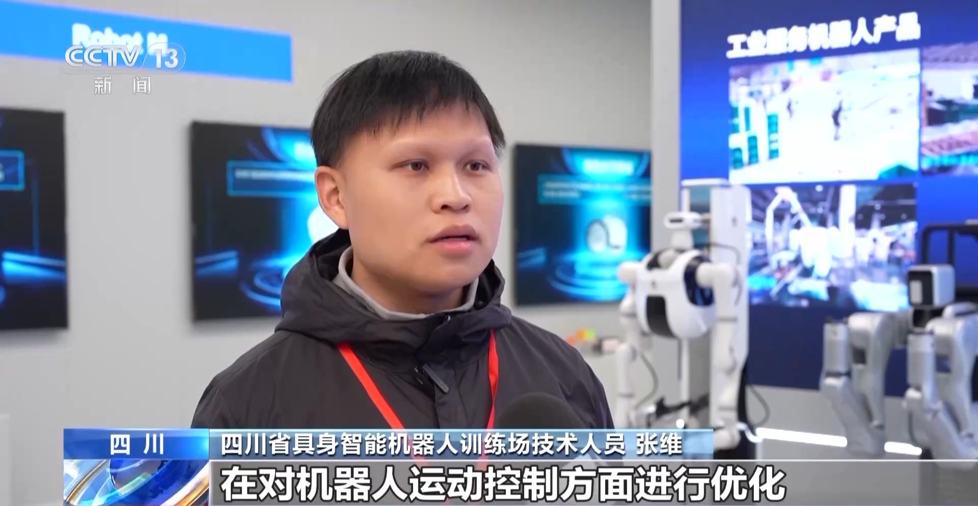 四川省具身智能机器人训练场技术人员 张维:在这个训练场里边,我们实际上是有很多合作的供应商,我们统一对它进行数据采集,让它更易于去统一调整或者是统一的进步,在机器人的研发或者是下一代的升级上面,能有互相借鉴。