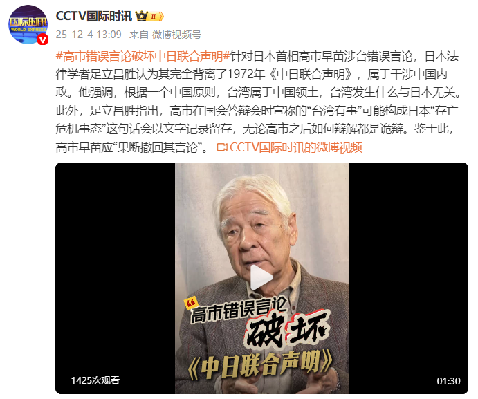 正规配资平台 日本法律学者:高市错误言论完全背离1972年《中日联合声明》,应“果断撤回其言论”