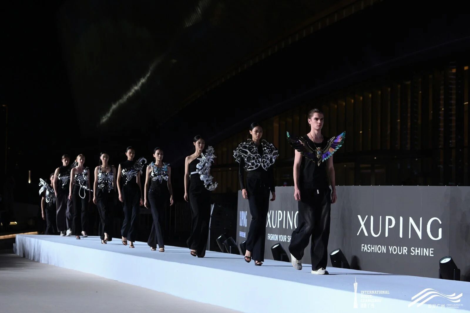 广州白鹅潭大湾区艺术中心外广场流光溢彩,“饰品自由 XUPING旭平首发”秀演于此华丽上演。整场大秀将城市地标、自然风光与人文匠心融于方寸珠宝,为观众呈现一场贯通古今、融汇东西的视觉盛宴。