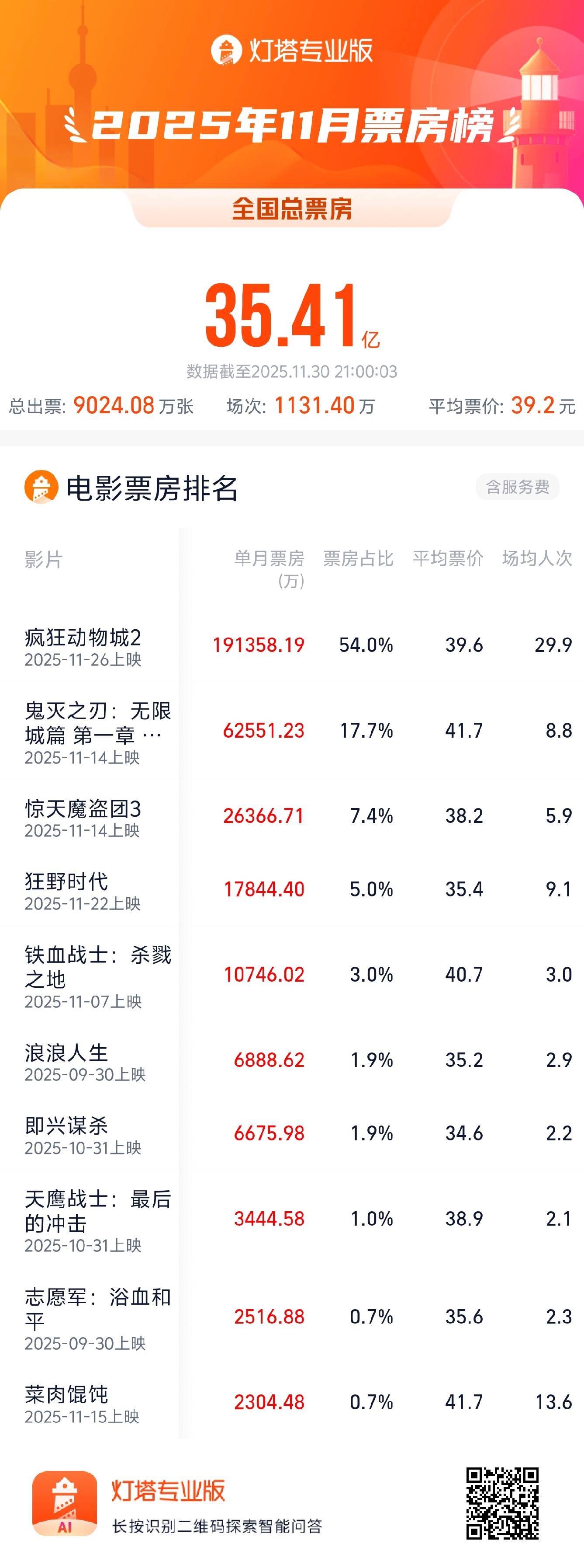 正规配资十大排名 资讯丨11月票房35.41亿,《疯狂动物城2》11月票房冠军!
