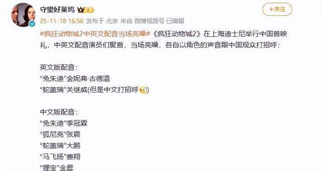 文丨禄 《疯狂动物城》强势回归,2025年最值得期待的外语电影终于来了! 这可是憋了足足九年的大招,将会在在这个月的26日和广大粉丝见面。 比起这对“狐兔CP”的故事,配音演员的阵容貌似更受关注。