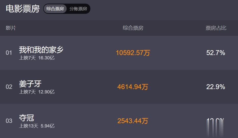 一部没有感情的作品是无法给观众带来任何体验的,姜子牙止步十亿,在这个国庆热即将结束的时候他依然没有突破二十亿。这就说明了一个问题,姜子牙的热度是哪吒给它的,而它无感情的核心导致了他后期疲软了下来。