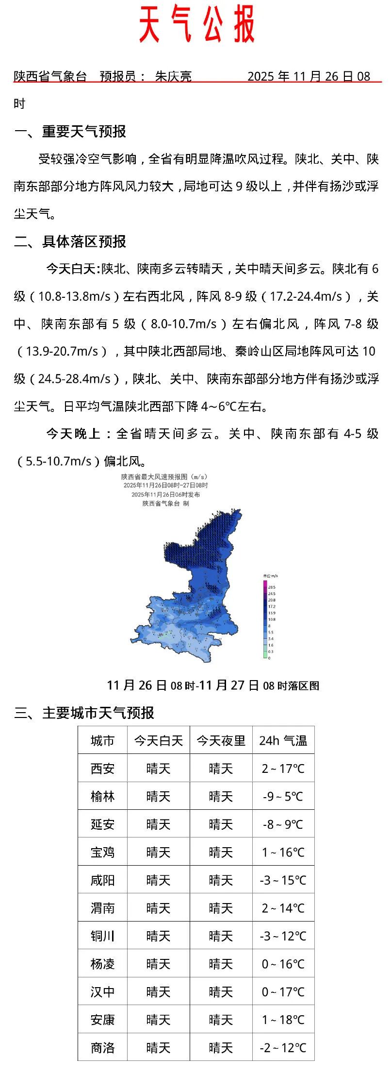 发布天气公报