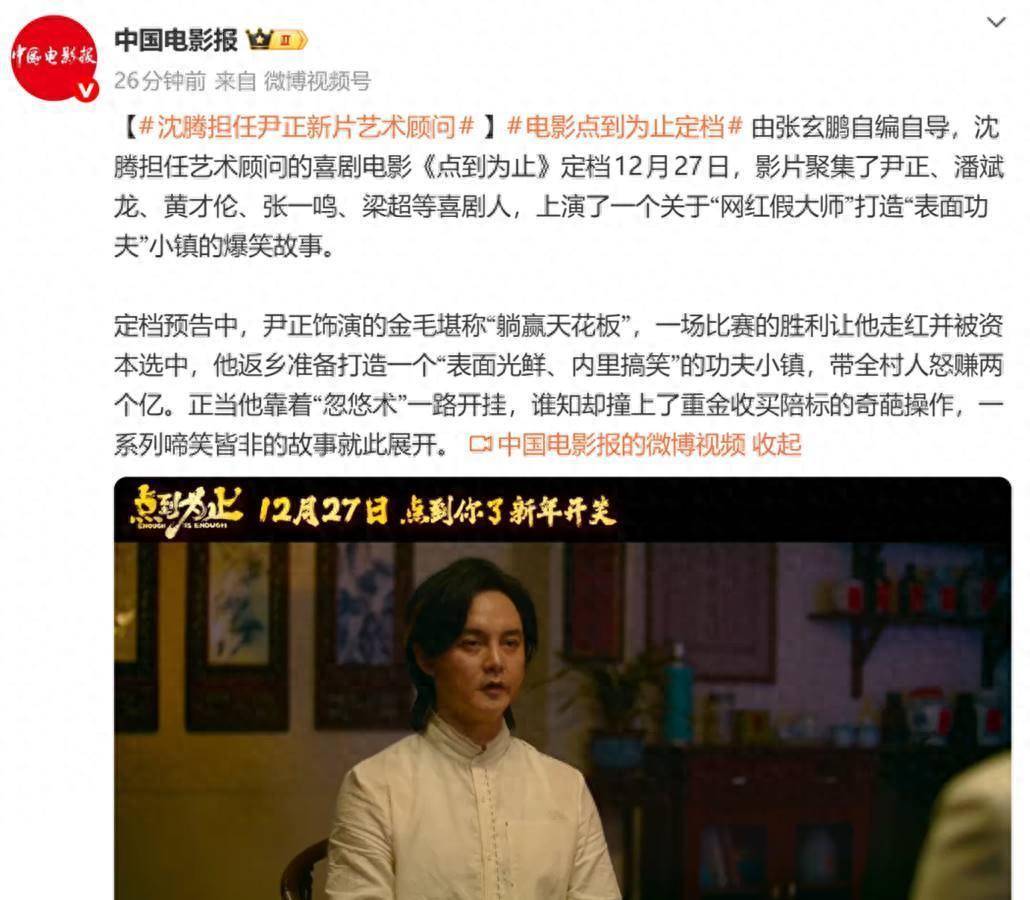 国产喜剧电影圈迎来重磅消息——由尹正领衔主演、沈腾惊喜加盟的《点到为止》正式官宣定档12月27日,强势登陆元旦档院线。