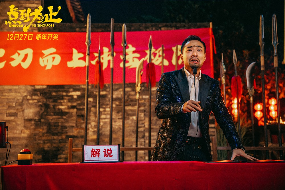 由张玄鹏编剧并执导,沈腾担任艺术顾问,尹正领衔主演,潘斌龙、黄才伦、张一鸣、梁超领衔主演,魏翔、彭昱畅、王成思、宋木子、王韦程、黄允桐友情出演,蒋诗萌、东靖川、王瑄、萧李臻瑱联合主演的喜剧电影《点到为止》今日正式官宣定档12月27日,同步释出定档预告及海报,展现出由尹正饰演的“网红假大师”金毛(尹正 饰)因比武躺赢走红被资本选中,于是返回家乡从心镇,准备带领全村人做足“表面功夫”狂赚两个亿,却遇重金收买陪标,由此发生了一系列笑闹趣事。影片集结了多位国民喜剧人,用密集笑点和反差设定在2025年末为观众上演了一场欢乐解压的喜剧盛宴。